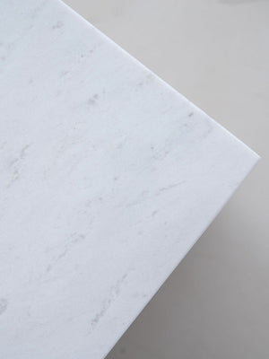 Tapa: mármol blanco natural, canto fino y acabado pulido.
