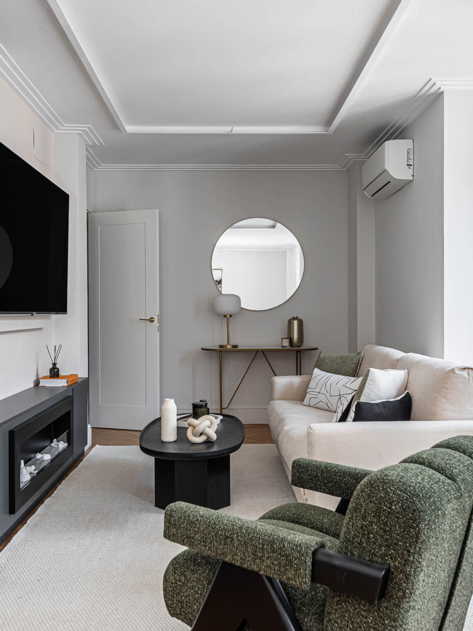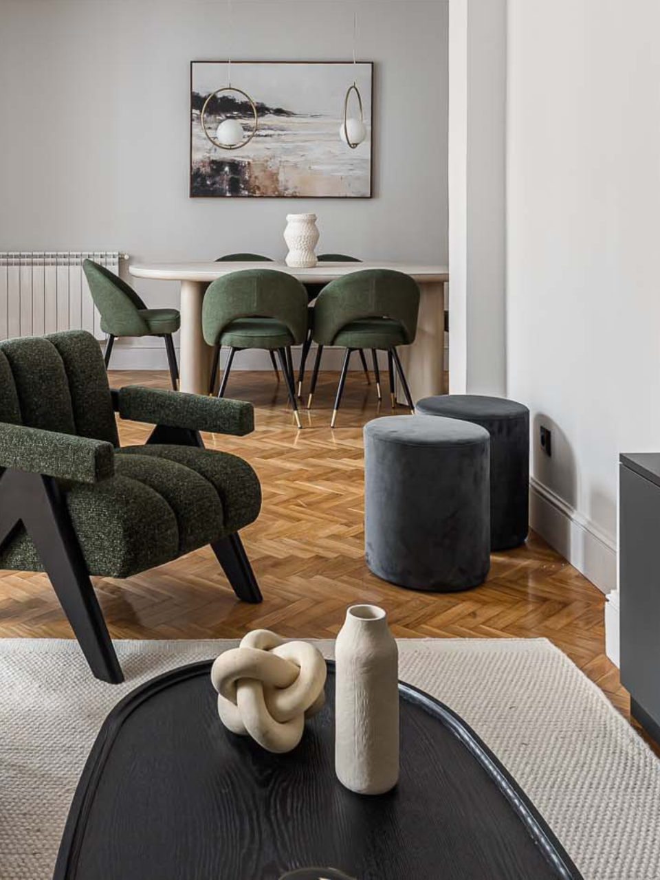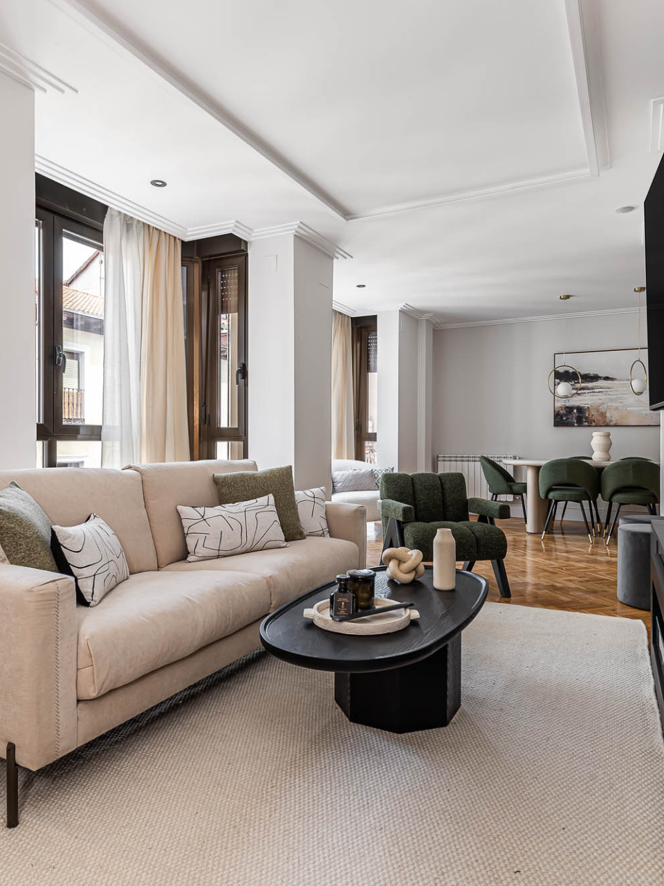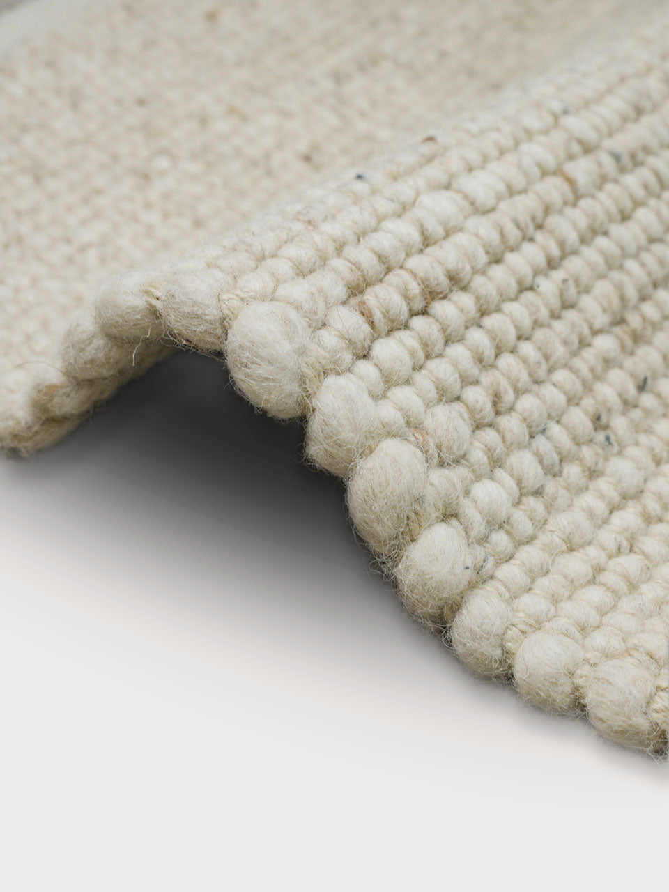 Alfombra de lana artesanal en color arena.