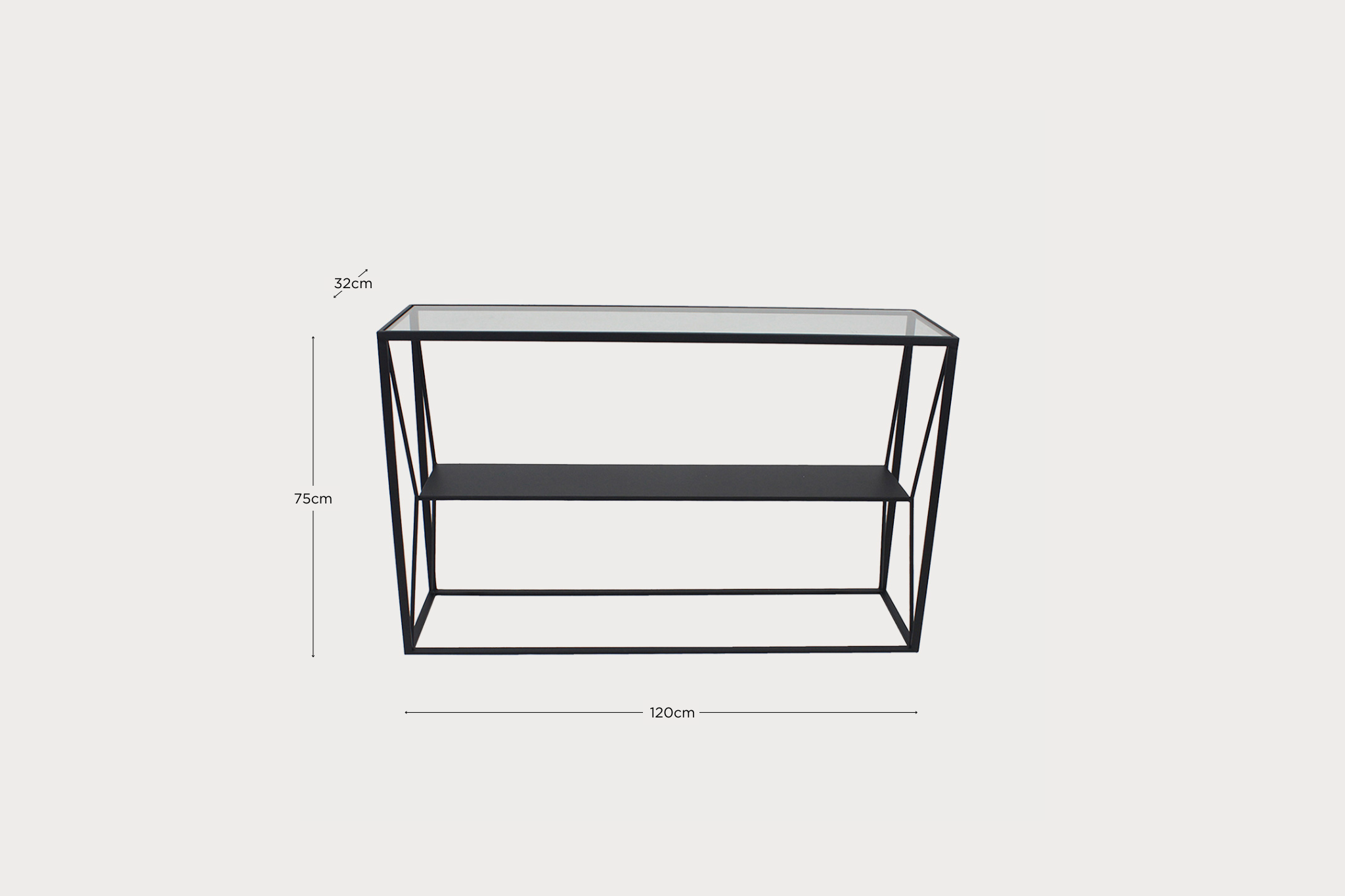 La estantería MAXIME incluye un doble estante de metal que ofrece amplio espacio para exhibir tus objetos decorativos, libros o cualquier otro artículo, proporcionando una solución práctica sin perder el estilo. Los tirantes estabilizadores no solo aseguran la firmeza de la estructura, sino que también añaden un toque de diseño, reforzando su aspecto moderno y sofisticado.