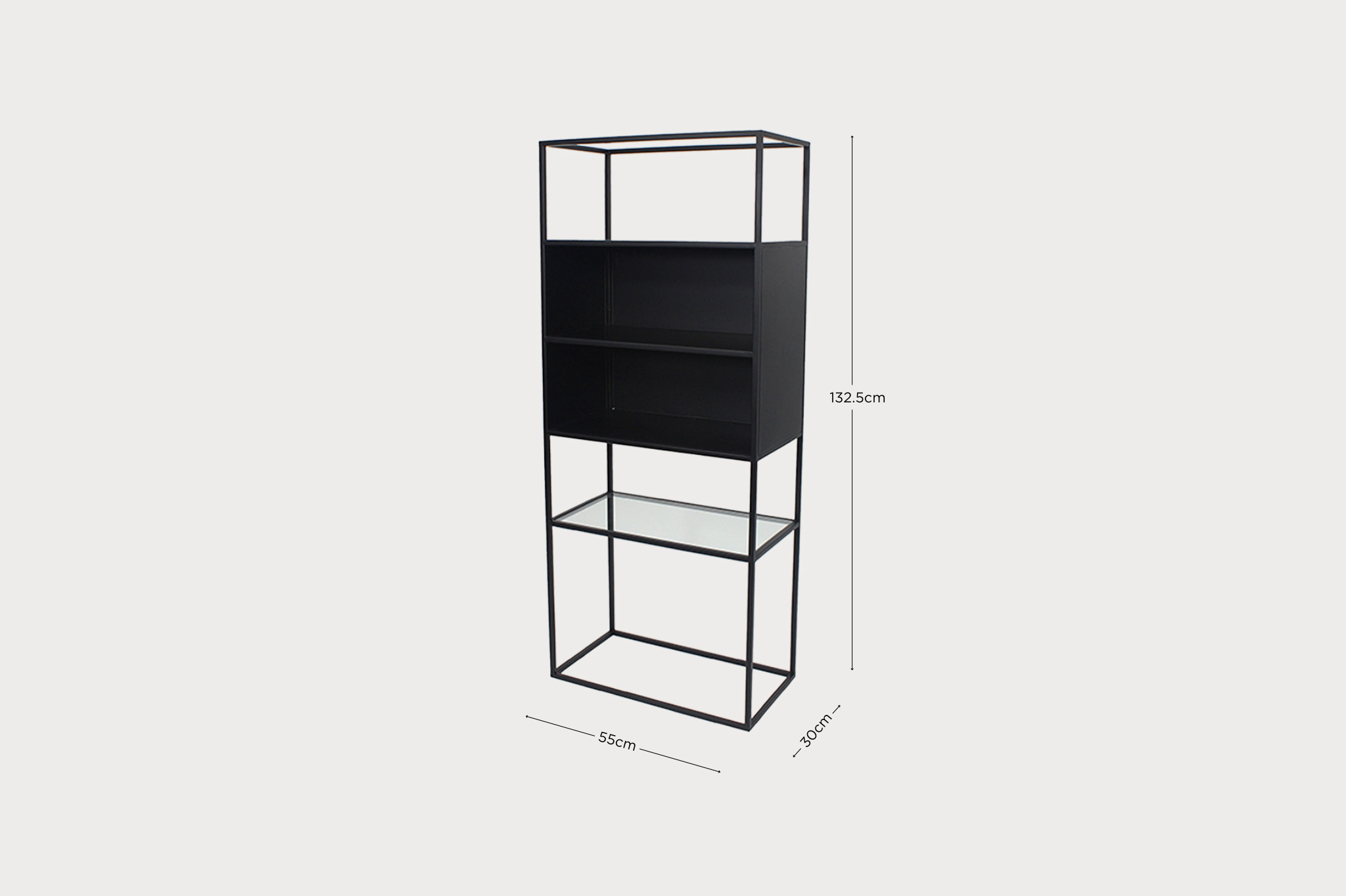 El estante superior de cristal templado ofrece un contraste visual refinado, aportando ligereza y un toque contemporáneo al conjunto. Esta fusión de materiales resaltan el diseño versátil y funcional de la estantería GIOVANNI, haciéndola ideal para complementar la decoración de cualquier salón. Con su estética moderna e industrial, esta pieza es perfecta tanto para exhibir objetos decorativos como para organizar elementos de manera práctica y con estilo.