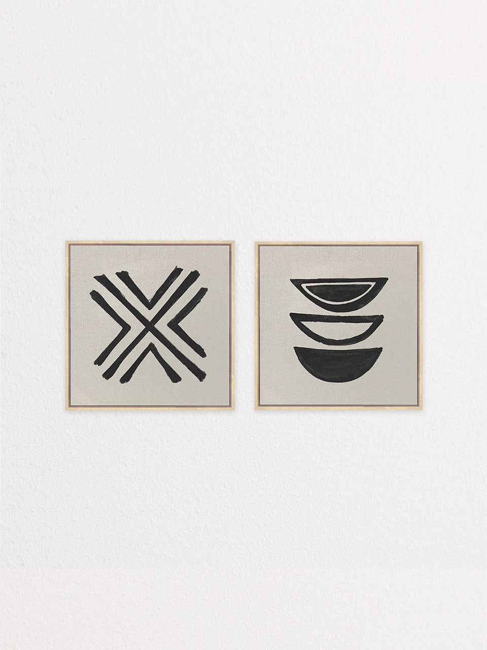 Set de dos cuadros decorativos hecho a mano con marco incluido (60x60 cm)