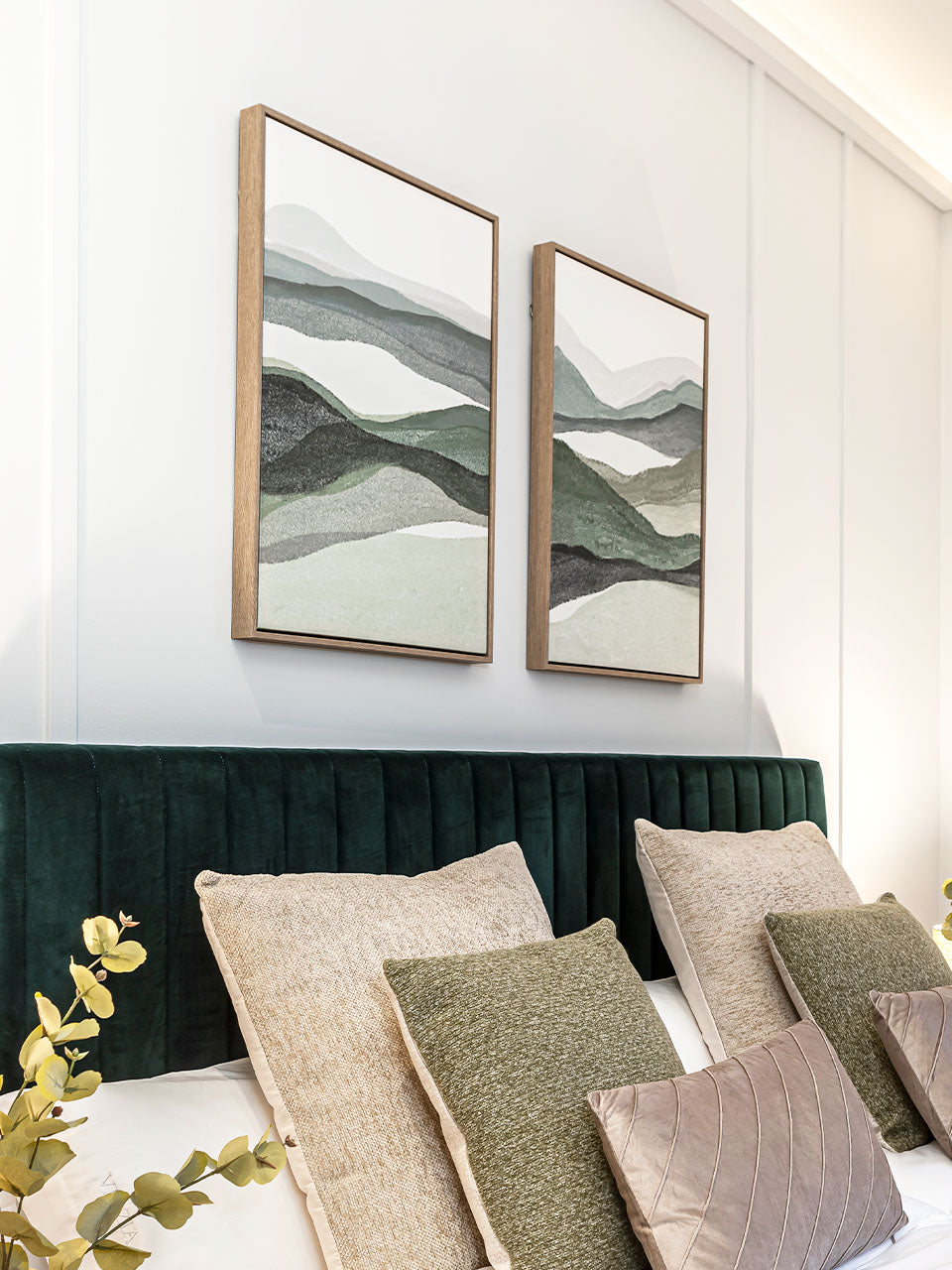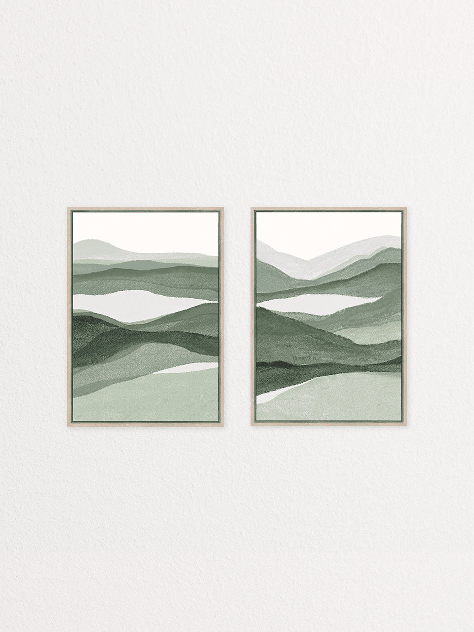 Set de dos cuadros decorativos pintados a mano con marco (50x70 cm)