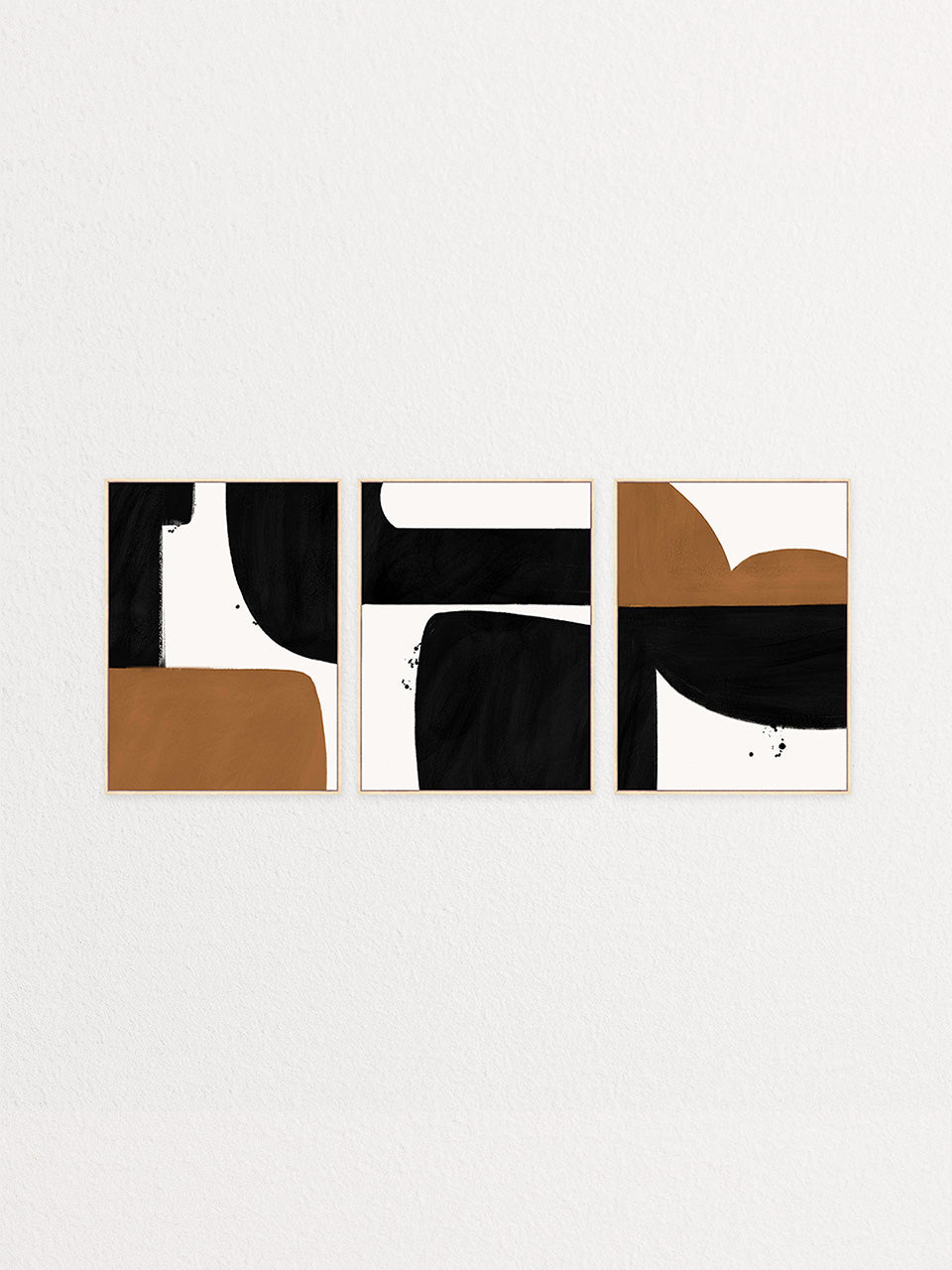 Set de tres cuadros decorativos pintados a mano con marco (50x70 cm)