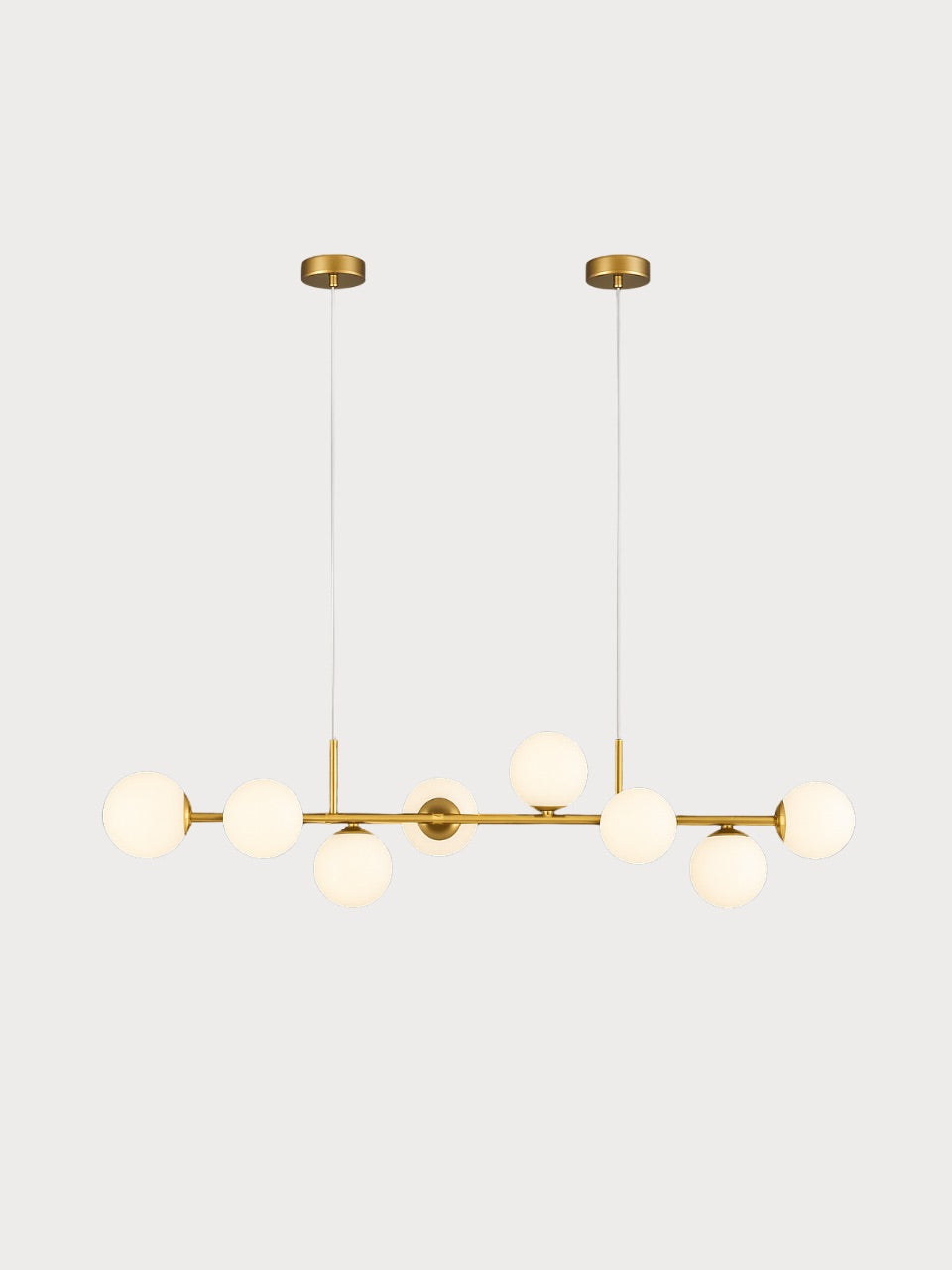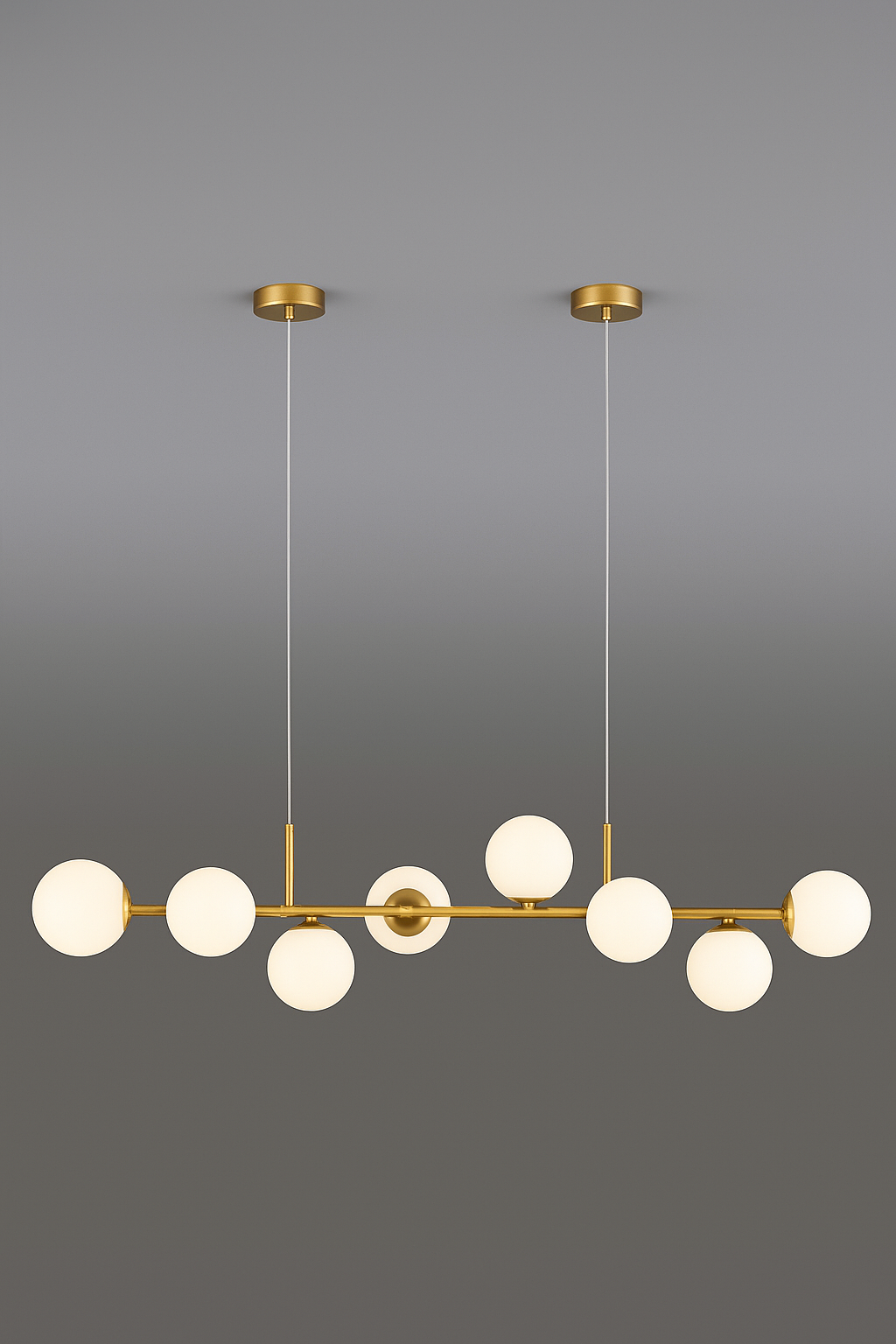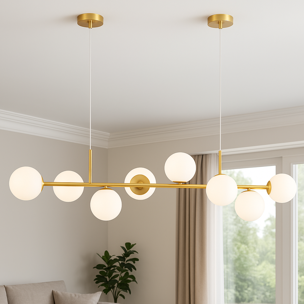 Lámpara de techo de metal dorada con 8 bombillas.