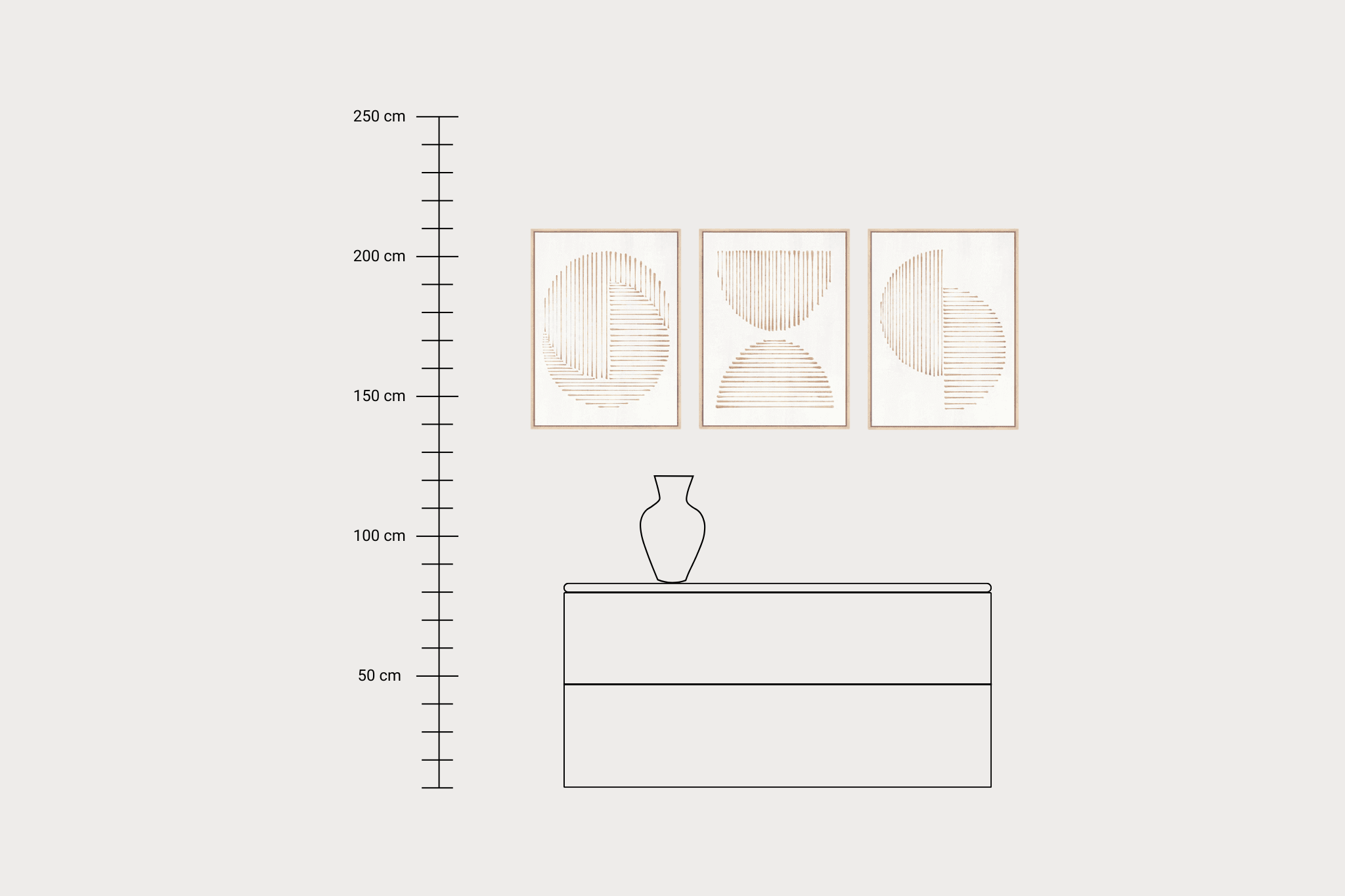 El set de cuadros decorativos CLAUDIA, compuesto por tres piezas pintadas a mano en un formato de 50x70 cm, es una expresión artística geométrica que fusiona elegancia y carácter en cada trazo. Su diseño cuidadosamente elaborado, con una composición armoniosa de formas, aporta un toque sofisticado y contemporáneo a cualquier espacio.