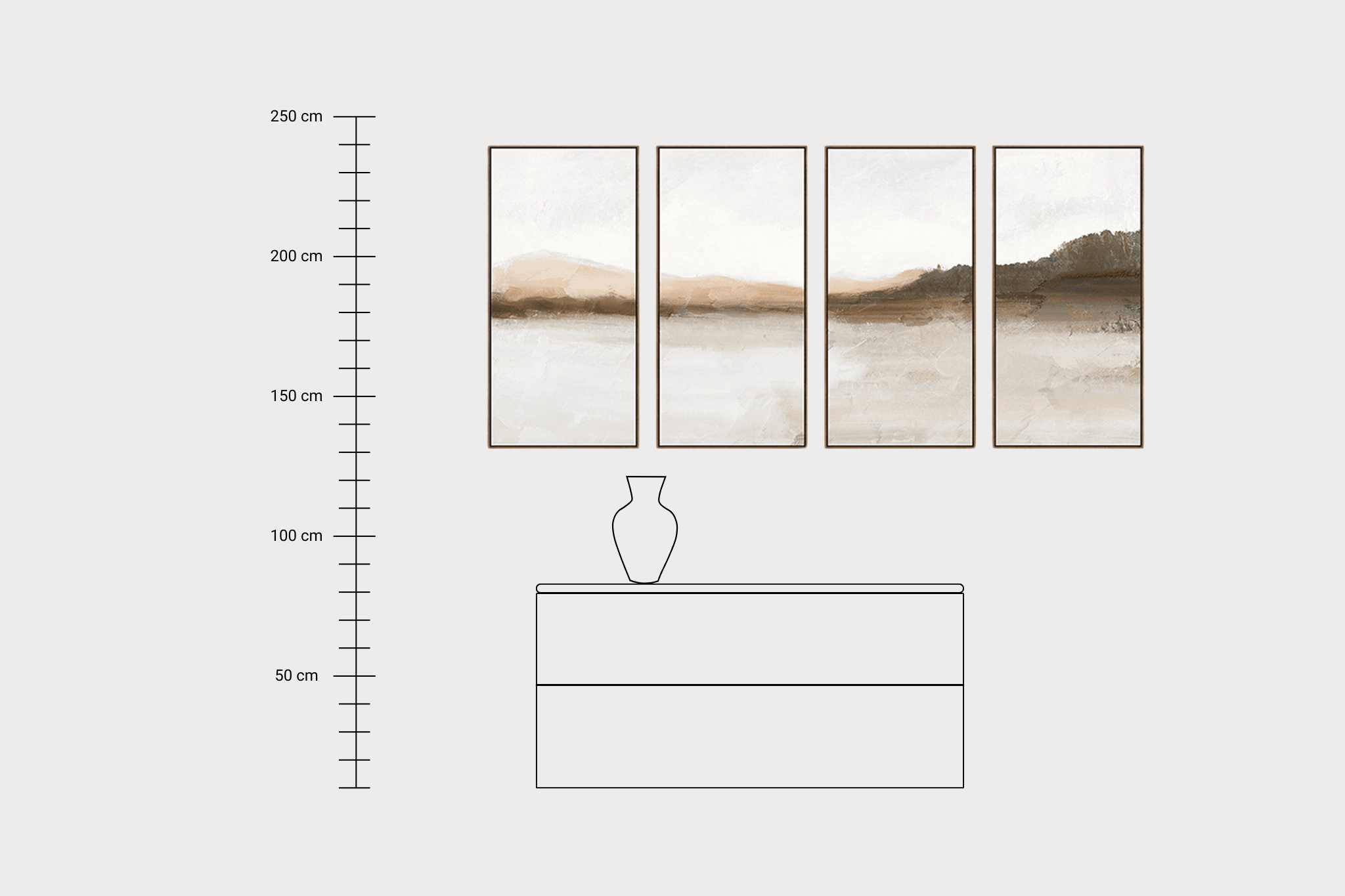 El set de cuadros decorativos GENESIS, compuesto por cuatro piezas pintadas a mano en un formato de 60x120 cm, es una expresión artística que fusiona elegancia y carácter en cada trazo. Su diseño cuidadosamente elaborado, con una composición armoniosa de formas y colores, aporta un toque sofisticado y contemporáneo a cualquier espacio.