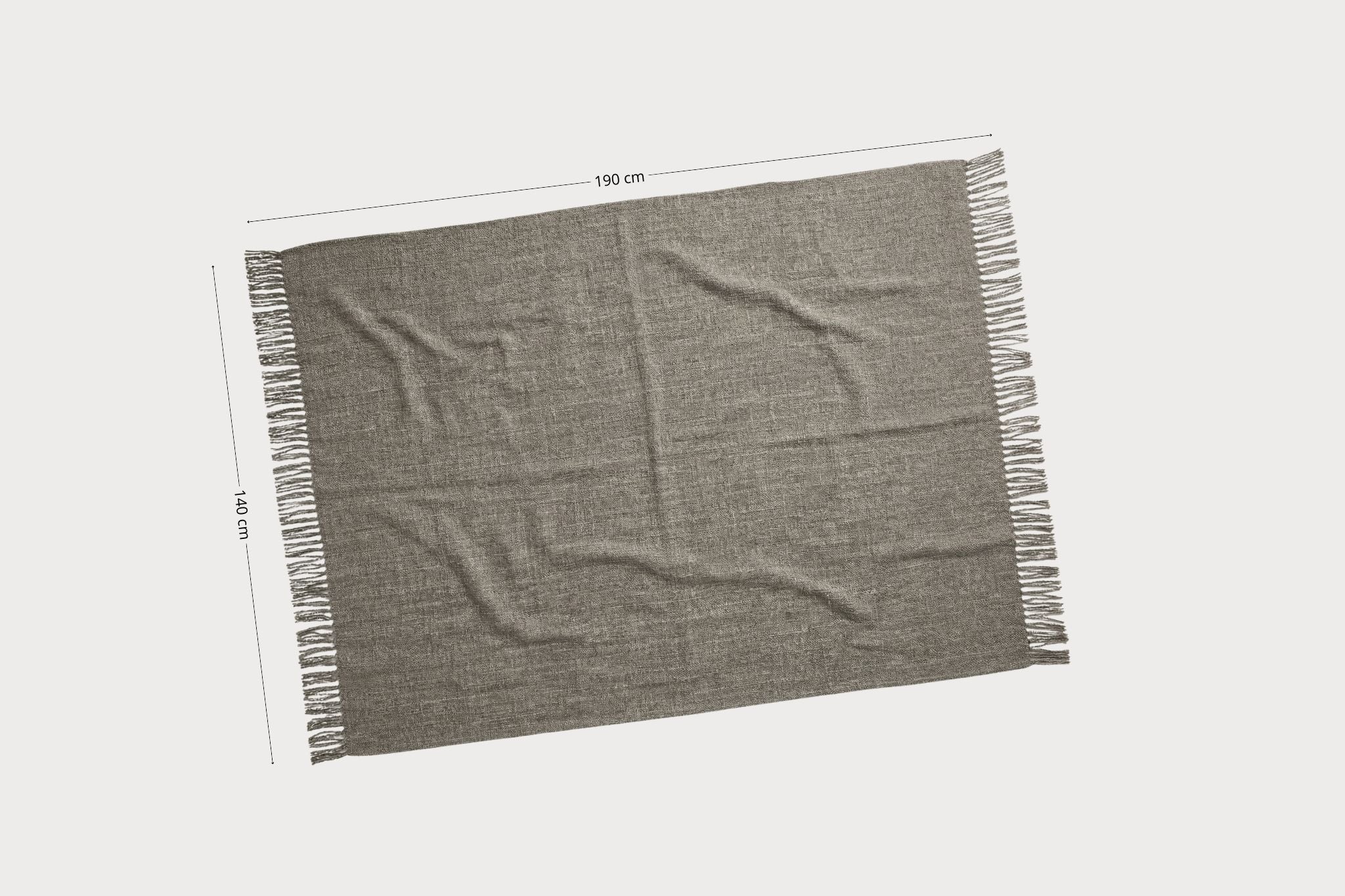 El acabado con flecos en los extremos añade un detalle sutil y atemporal, mientras que su formato de 140 × 190 cm la hace ideal para usar sobre el sofá, una butaca o como complemento decorativo en el dormitorio. Una manta versátil, pensada para integrarse con facilidad en interiores contemporáneos y elegantes.