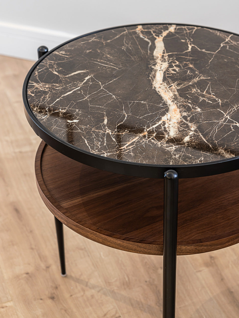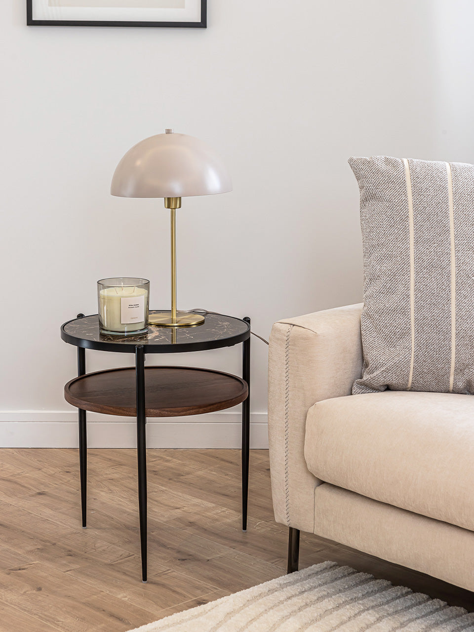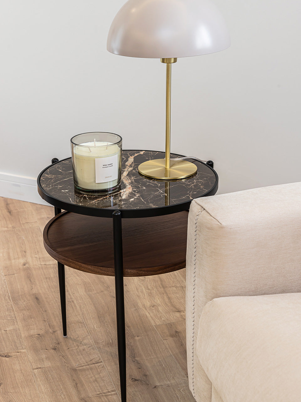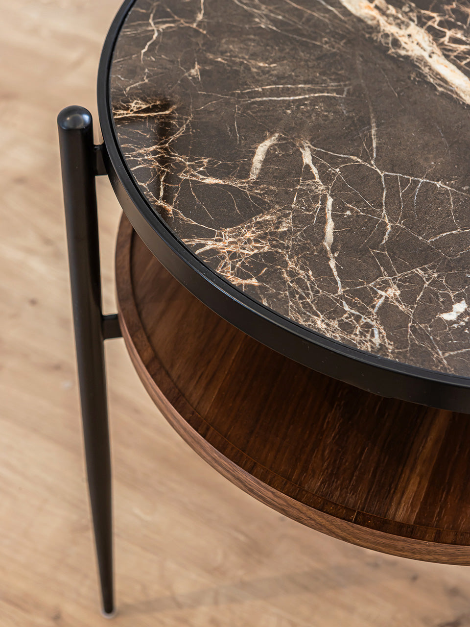 Mesa auxiliar con acabados de cerámica y madera. Ideal para complementar cualquier espacio de tu hogar