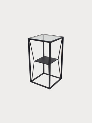 Mesa auxiliar de vidrio templado y metal negro. Combínala con nuestra mesa de centro HERNAN