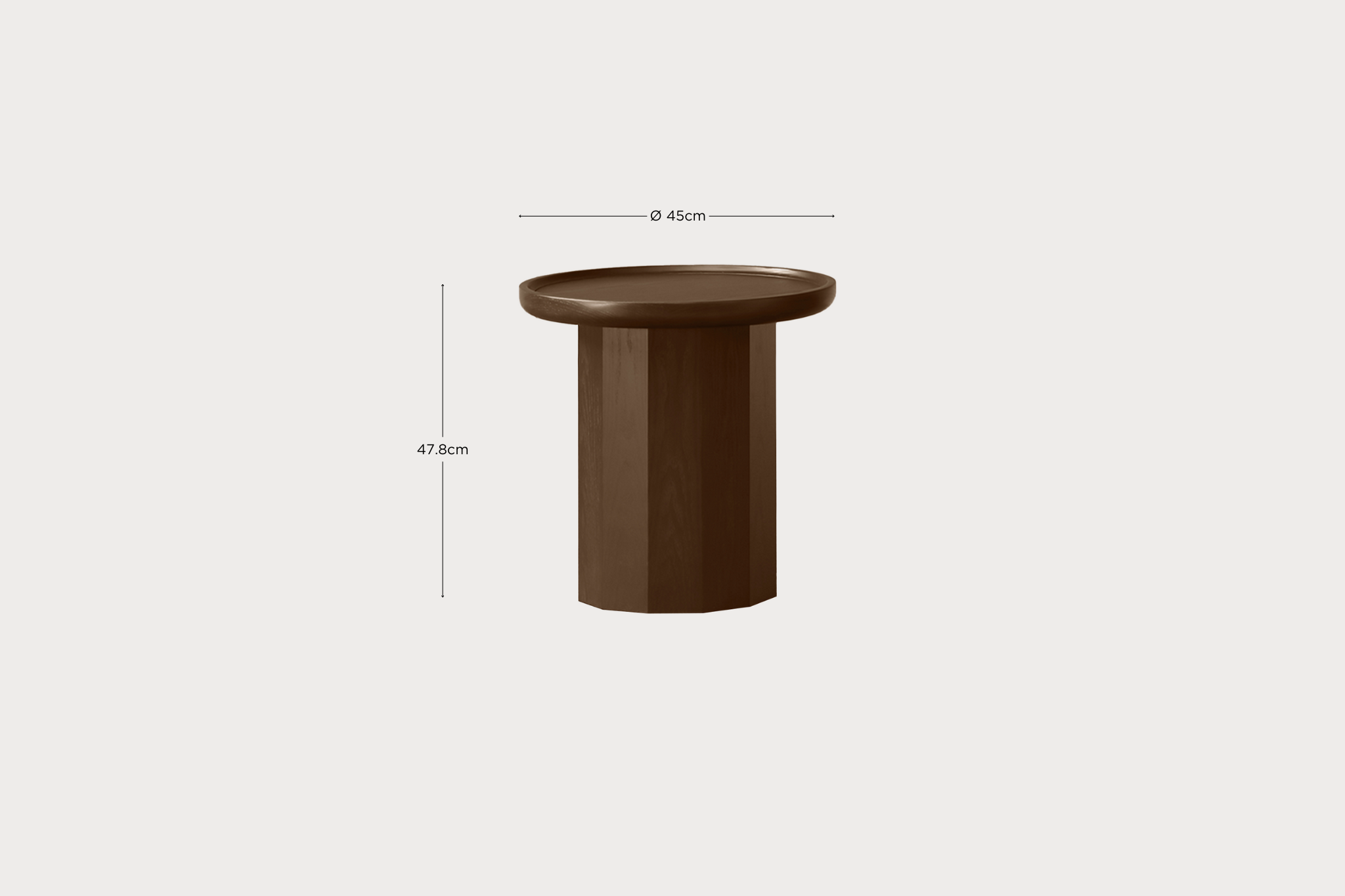 La mesa auxiliar PIETRO combina la belleza natural de la madera con un diseño elegante y fino. Su borde de madera en acabado nogal le confiere un aspecto cálido y sofisticado, ideal para complementar cualquier espacio.