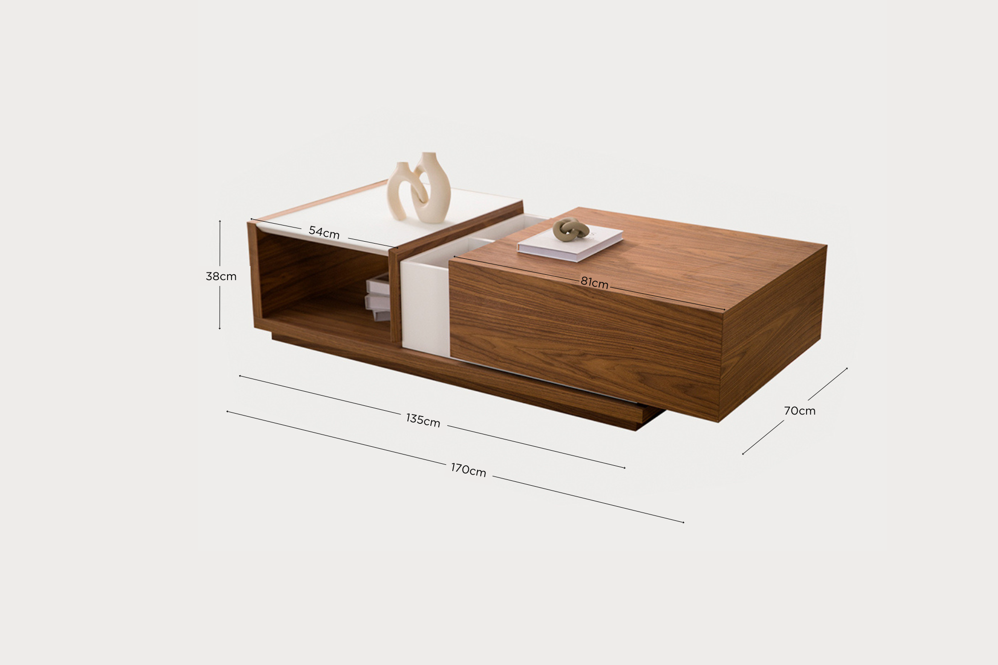 Mesa de centro de madera de nogal con almacenamiento