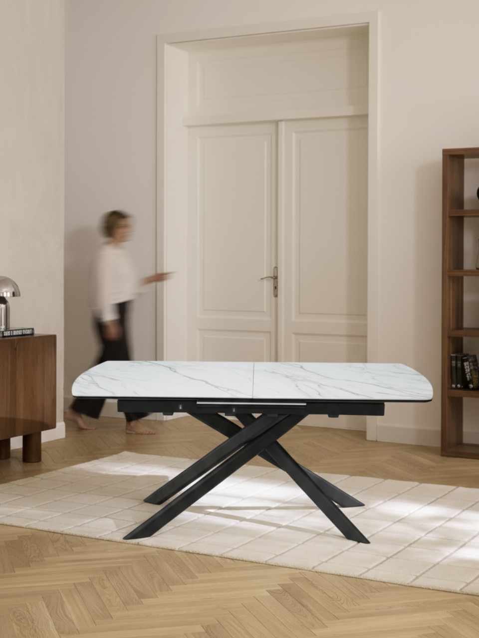 Mesa de comedor de cerámica efecto mármol, extensible 180 - 230 cm