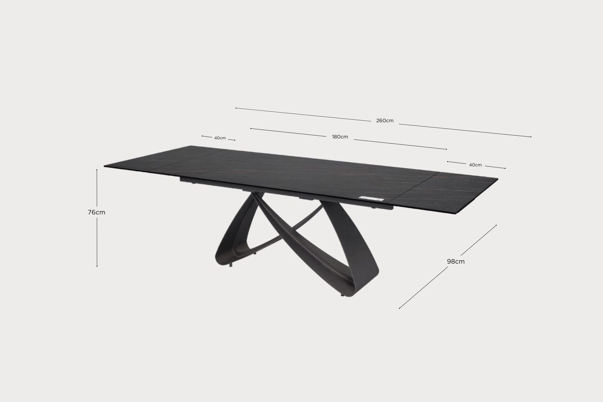 Gracias a su sistema de extensión, esta mesa puede pasar de 180 a 260 cm con facilidad.