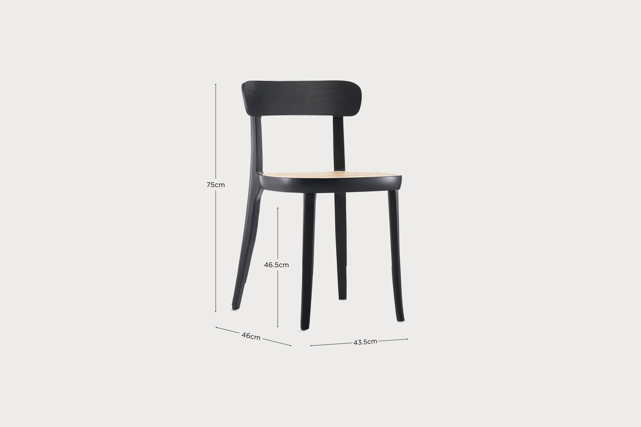 La silla VALERIA combina la belleza natural de la madera de haya con un asiento de ratán, creando una pieza elegante y atemporal.