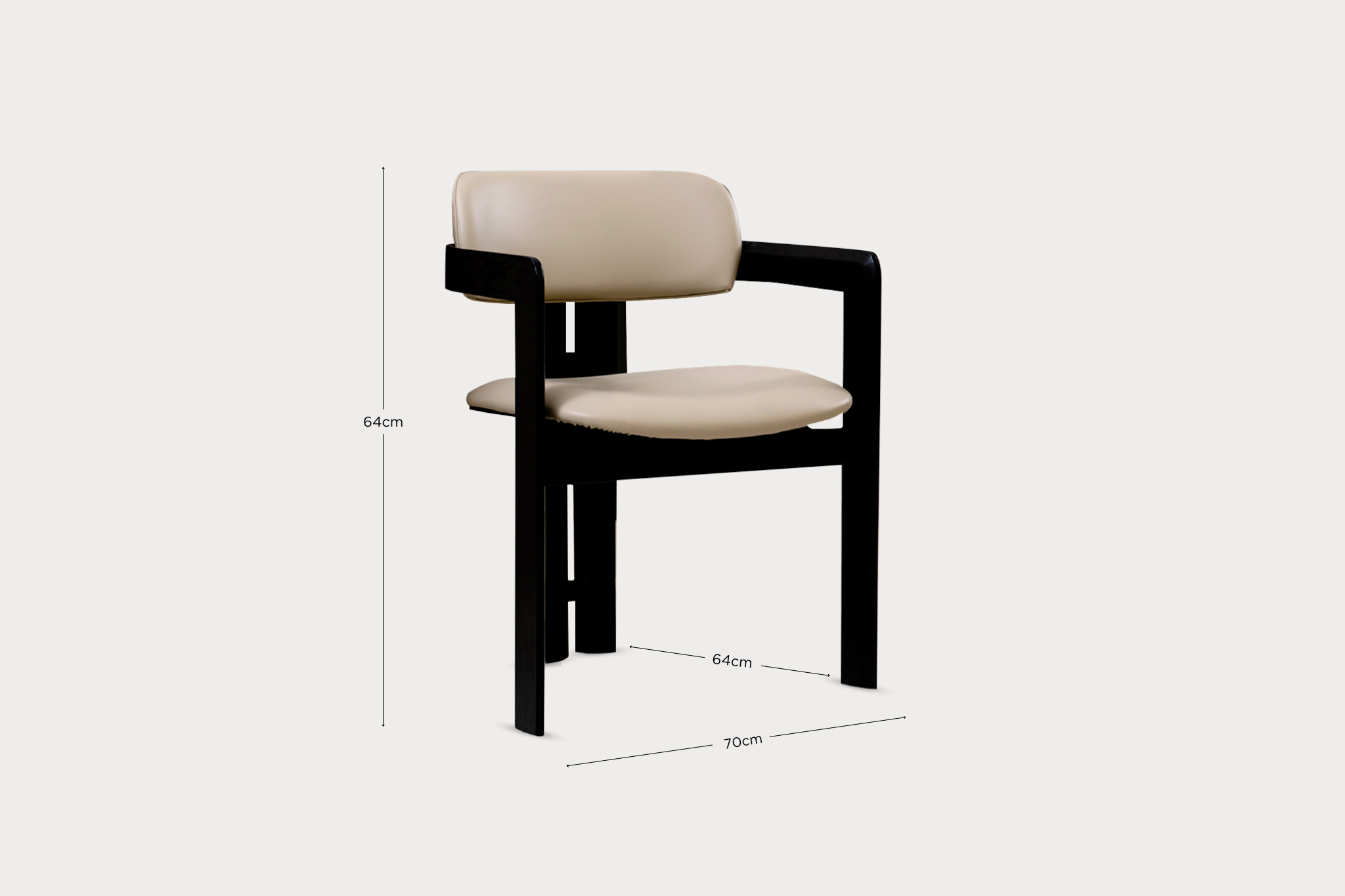 El asiento de cuero orgánico en acabado beige asegura un confort excepcional y aporta una sensación de lujo y sofisticación a la silla. Esta combinación de materiales crean un equilibrio perfecto entre estilo clásico y moderno.