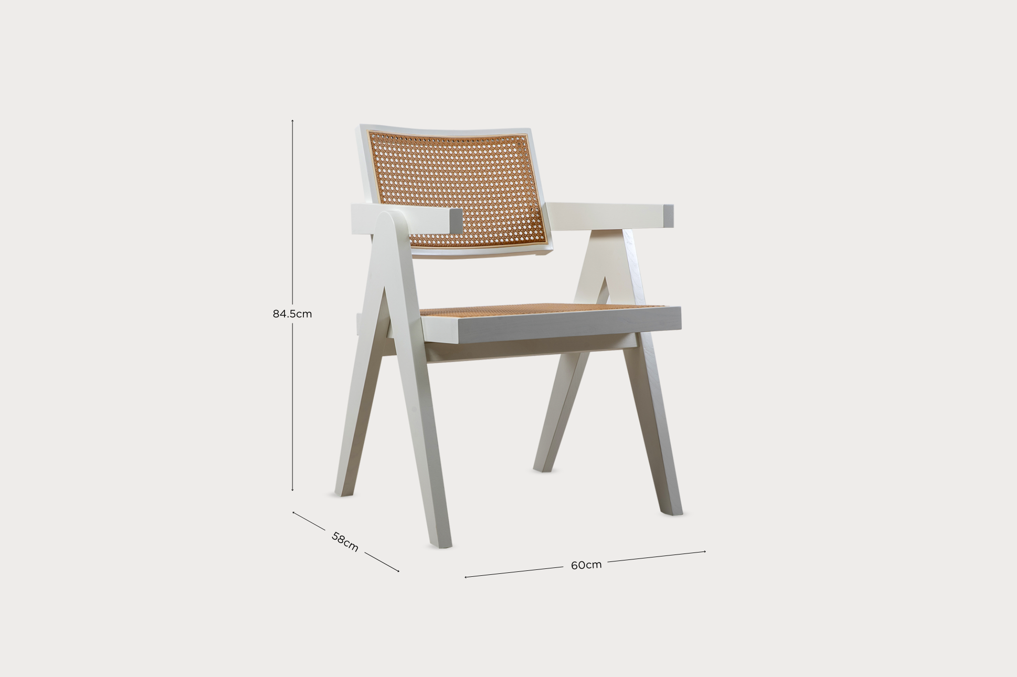 El asiento y respaldo en ratán añaden un toque artesanal y natural, creando una armoniosa combinación de texturas que realza el carácter único de la silla. Esta mezcla de materiales no solo aporta un atractivo visual, sino también una comodidad superior, adaptándose a diferentes estilos de interiores, desde los más clásicos hasta los contemporáneos o rústicos.