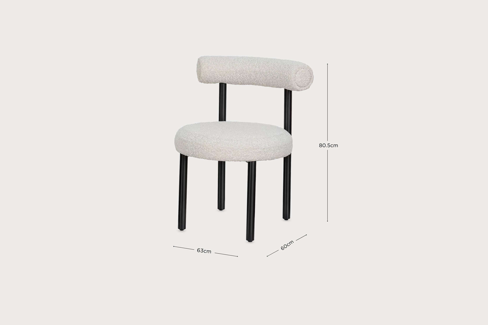 La silla JULIETTE es una tendencia destacada en el mundo del diseño de interiores gracias a su tapizado en tejido bouclé, que aporta una textura única y una sensación de suavidad incomparable.