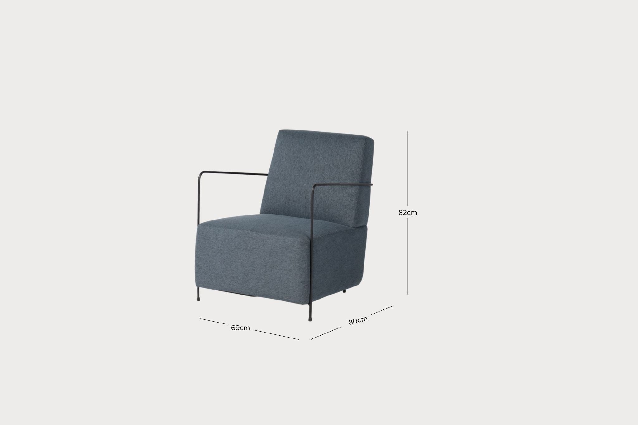 El sillón DAFNE combina funcionalidad y estilo con un diseño compacto y sofisticado, ideal para optimizar espacios sin renunciar al confort. Su tapizado de tela azul aporta un toque de color elegante, que realza cualquier estancia con personalidad.