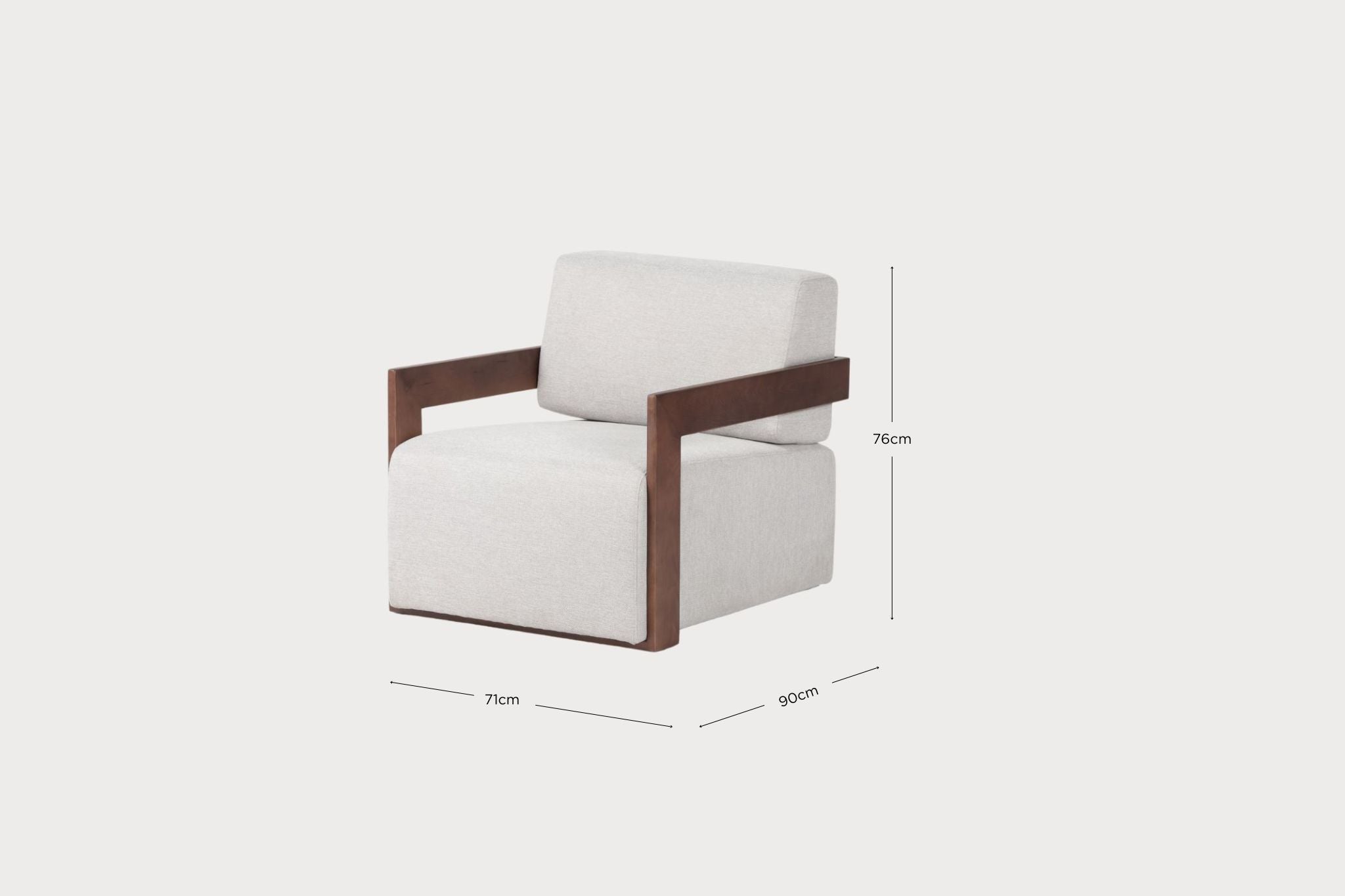 El sillón BERENICE es la opción perfecta para quienes buscan añadir un toque de comodidad y elegancia a cualquier ambiente. Confeccionado con un tejido de tela beige suave y una estructura sólida de chapado de madera de fresno, esta pieza destaca por su equilibrio perfecto entre confort y estilo.