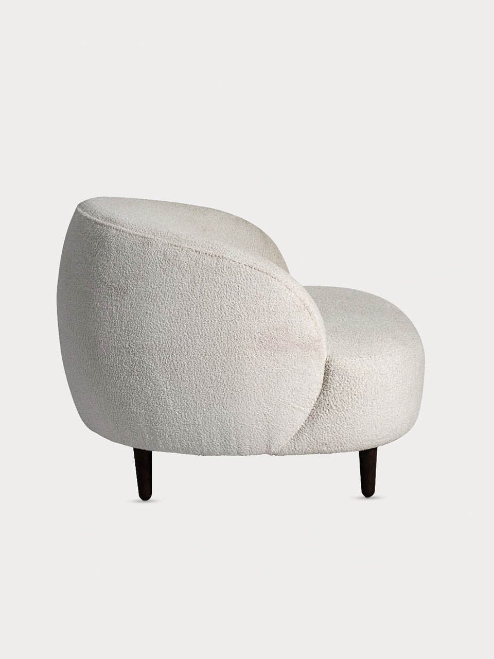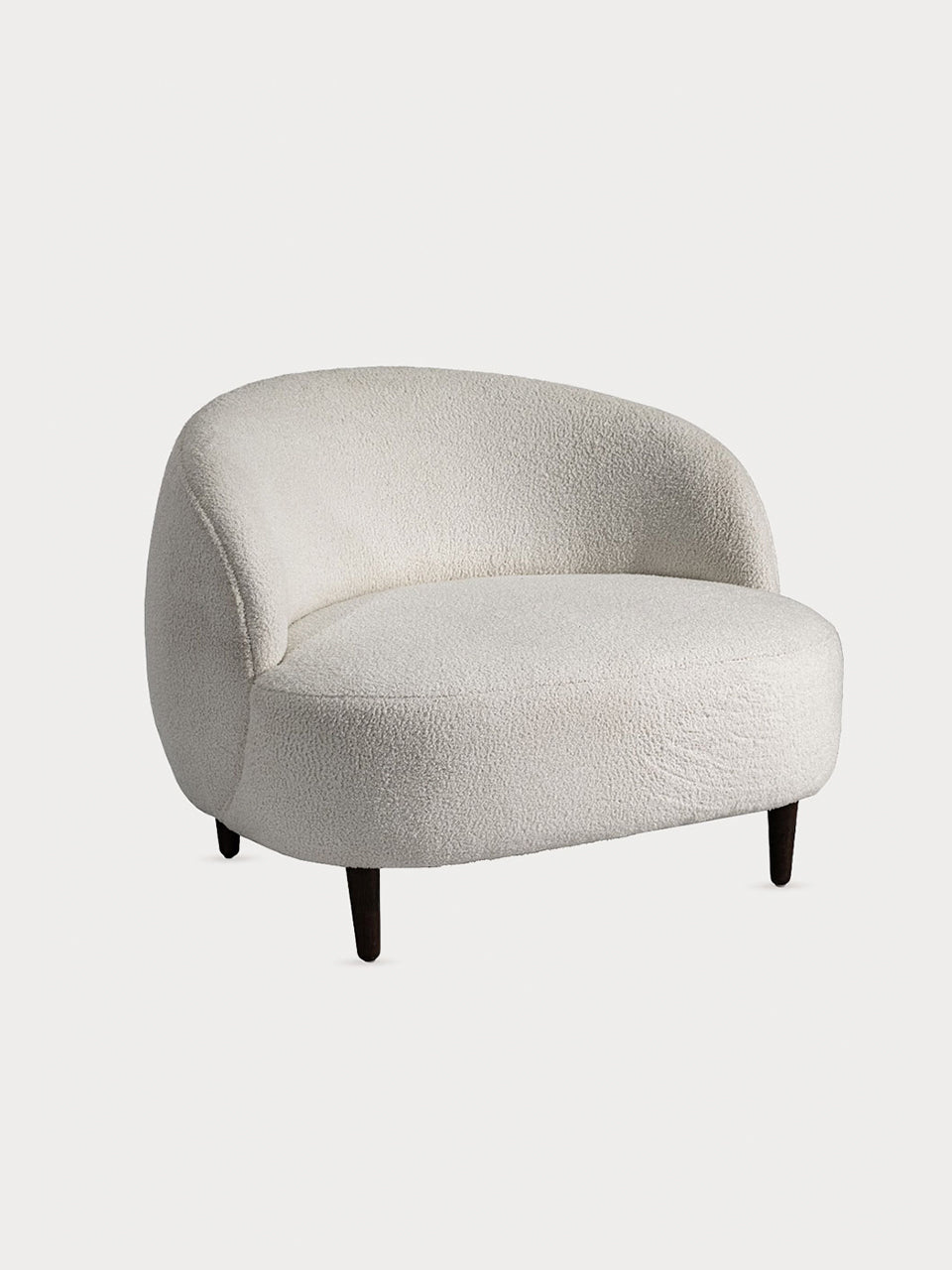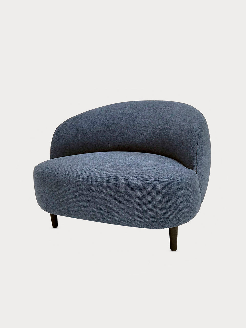 Sillón de tejido azul oscuro y blanco buclé/borreguillo y patas de acero en polvo negro