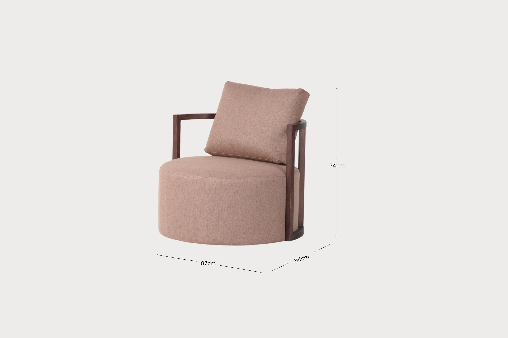 El sillón redondo FLORENCIA es la elección ideal para añadir un toque de calidez, comodidad y estilo a cualquier espacio. Esta pieza se distingue por su estructura sólida de madera de fresno y su tejido de tela marrón, que aporta suavidad y un acabado elegante.