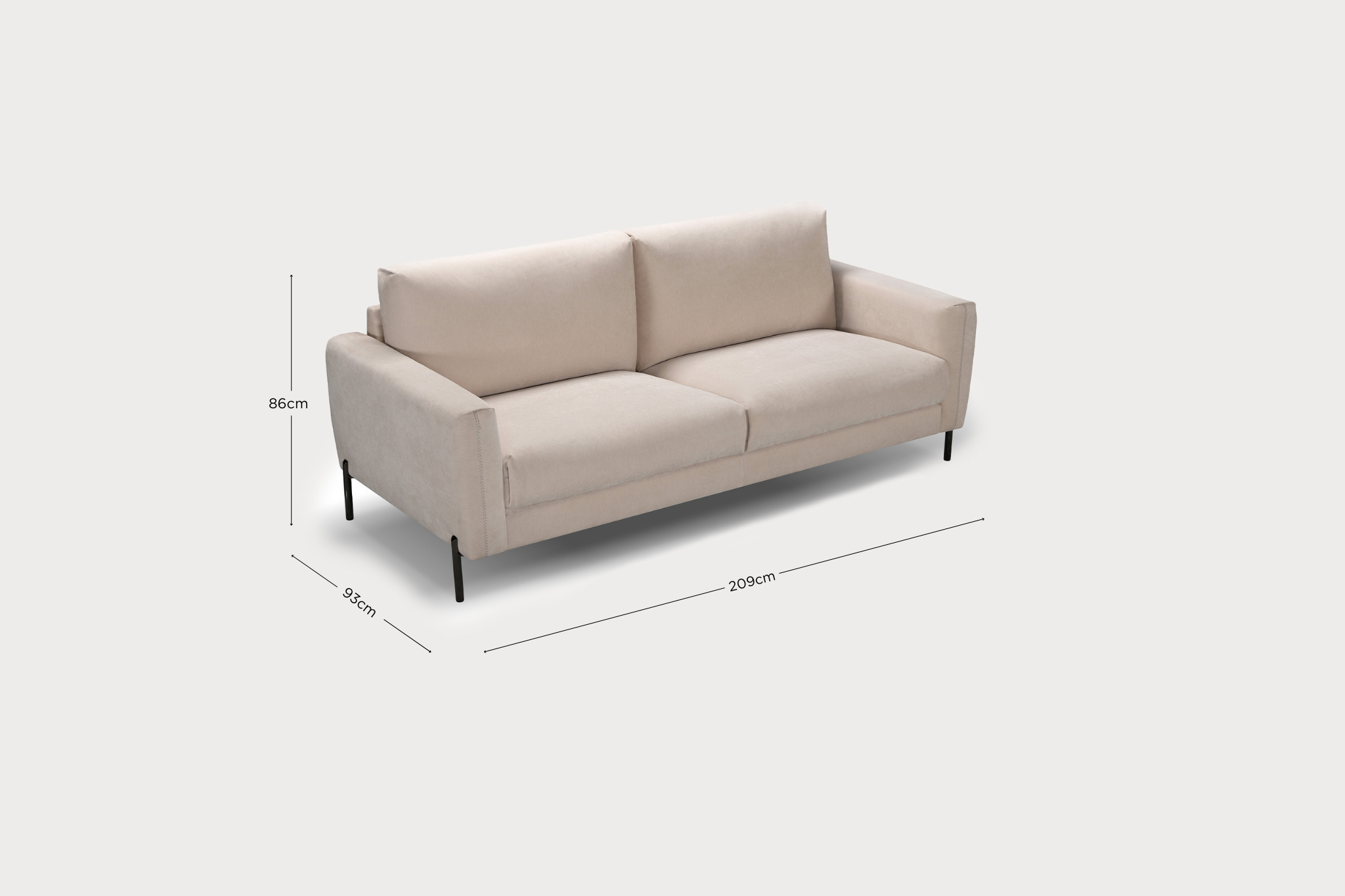 Aporta un toque de sofisticación en tu hogar con el sofá MARTA. Sus elegantes patas de acero y su diseño sencillo y refinado convierten a este sofá en una pieza clave para cualquier espacio. Perfecto para tres personas con un ancho de 209 cm, el sofá MARTA ofrece una combinación impecable de comodidad y estilo, asegurando un lugar acogedor y chic para relajarse.