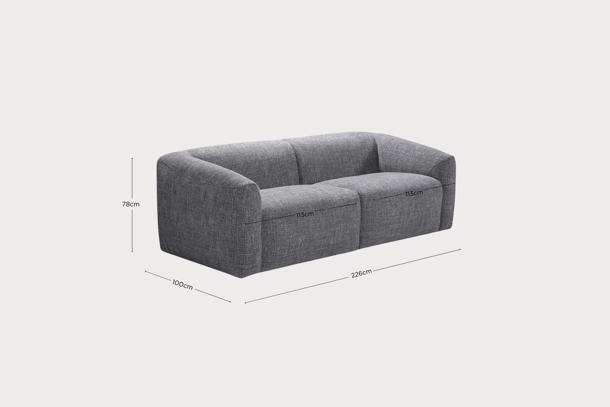 El sofá BEATRIZ ha sido concebido para aquellos que valoran el diseño y la calidad en cada detalle. Tapizado con materiales de la más alta calidad en un riguroso tejido en acabado gris, ofrece una textura suave y agradable al tacto.