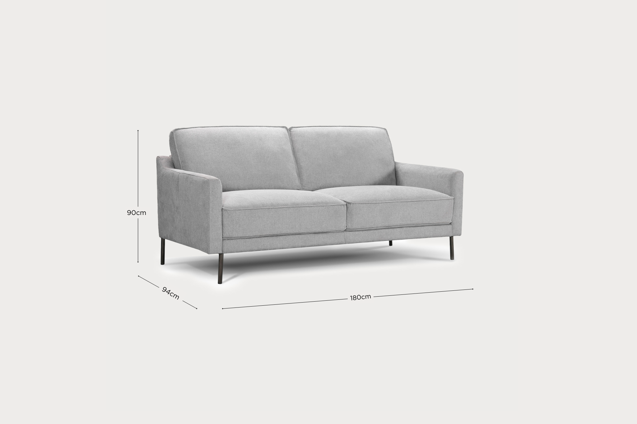 Este sofá es el complemento ideal para darle un toque de clase a tu espacio. Con un ancho de 180 cm, ofrece un amplio espacio para dos personas, proporcionando un confort óptimo. La tela gris perla no solo es visualmente atractiva, sino también práctica, ya que se adapta a una variedad de paletas de colores y es fácil de combinar con otros muebles y accesorios.