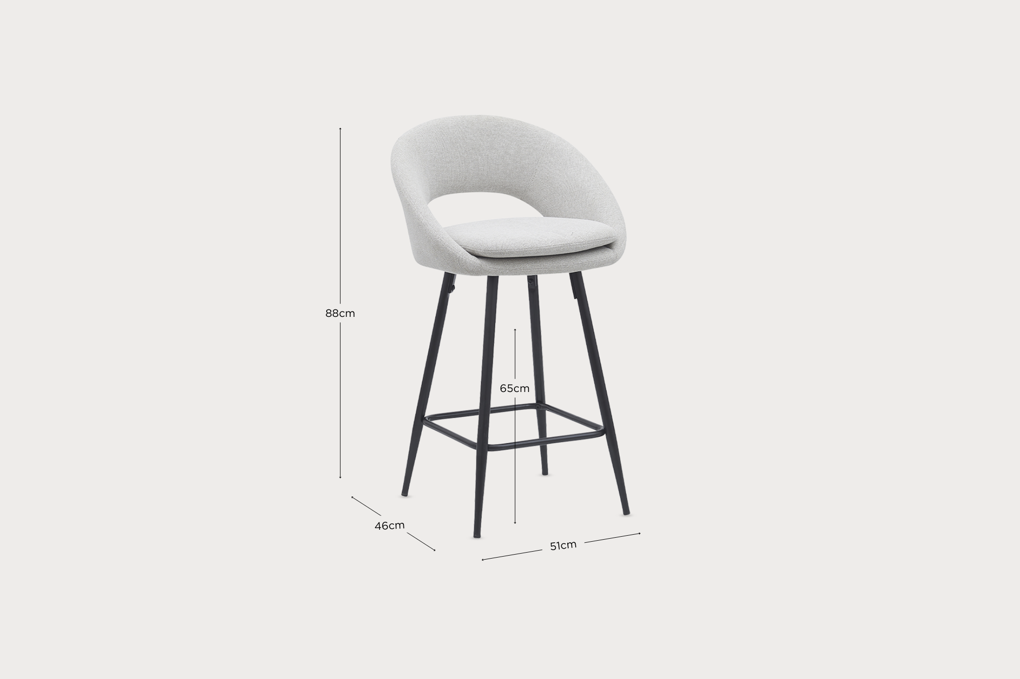Con una altura de 65 cm desde el asiento hasta el suelo, este taburete es ideal para diversas configuraciones, desde islas de cocina hasta barras y zonas de comedor. Su tamaño y diseño ergonómico aseguran una postura cómoda, haciendo que cada momento de uso sea agradable. El taburete LORETTA no es solo una solución de asiento funcional, sino también una pieza que aporta estilo y elegancia a tu hogar, elevando la estética de cualquier espacio con su presencia distinguida.